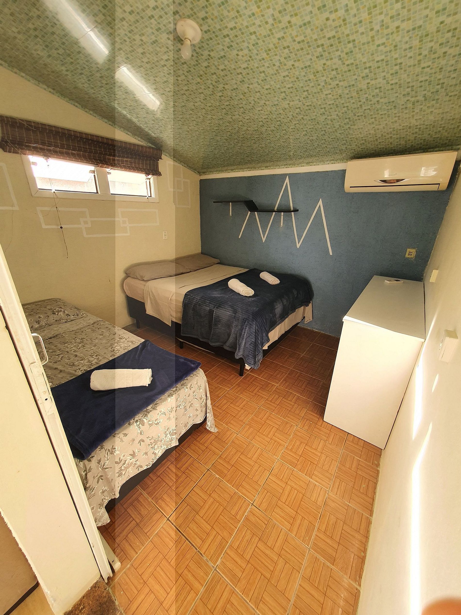 Os 2 quartos maiores possuem ar condicionado e o menor, ventilador. Fornecemos travesseiros e roupas de cama e banho.