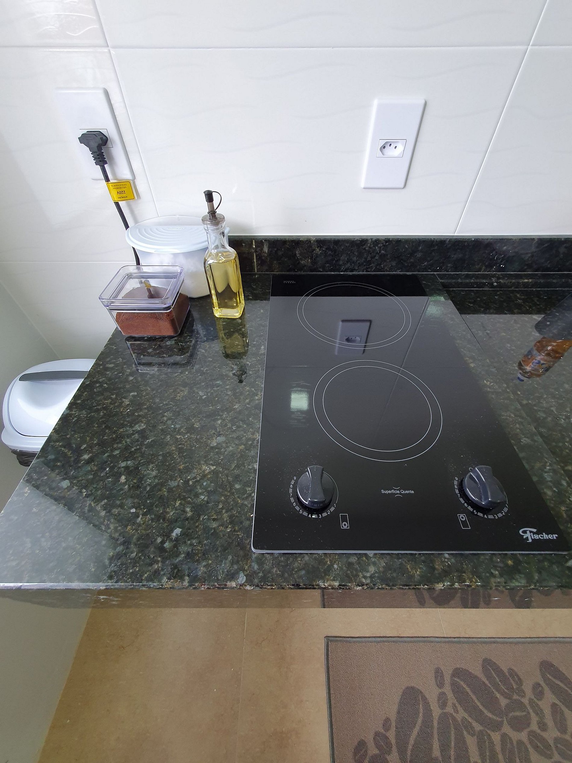 Acomodação exclusiva com 2 quartos, 1 banheiro e cozinha equipada com geladeira, micro-ondas, cooktop elétrico, liquidificador, sanduicheira, panelas, frigideira e demais utensílios básicos.