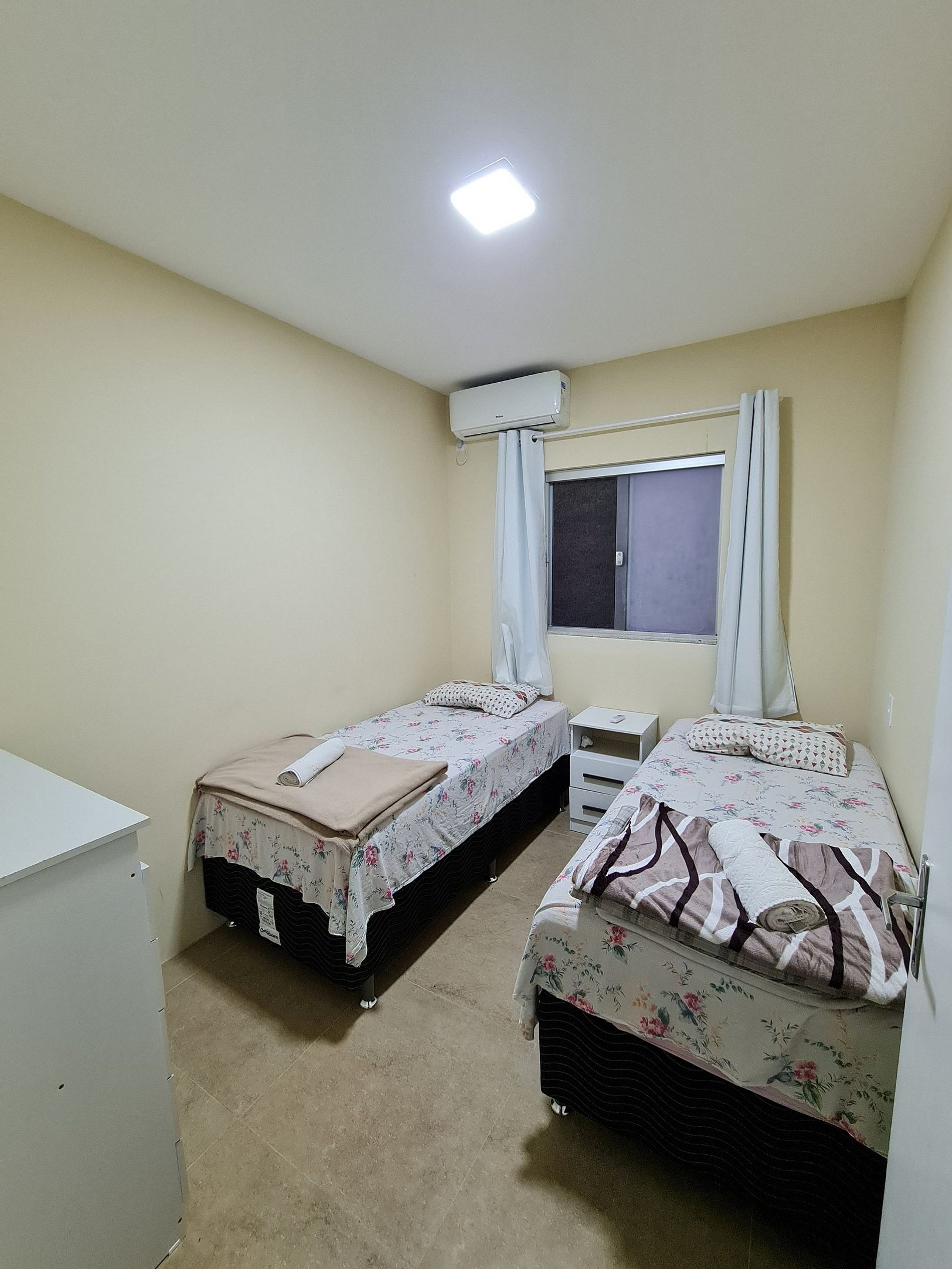 Os dois quartos possuem ar condicionado quente/frio. Fornecemos travesseiros e roupas de cama e banho.
